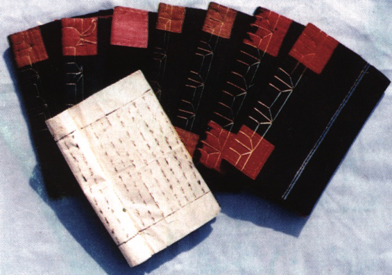 5.女书书写载体形式主要有纸质布面手抄本、纸片、扇面、布帕、花带,等等。