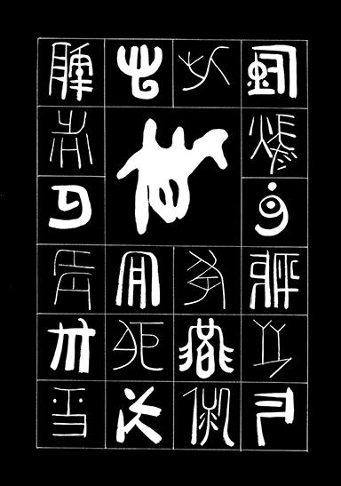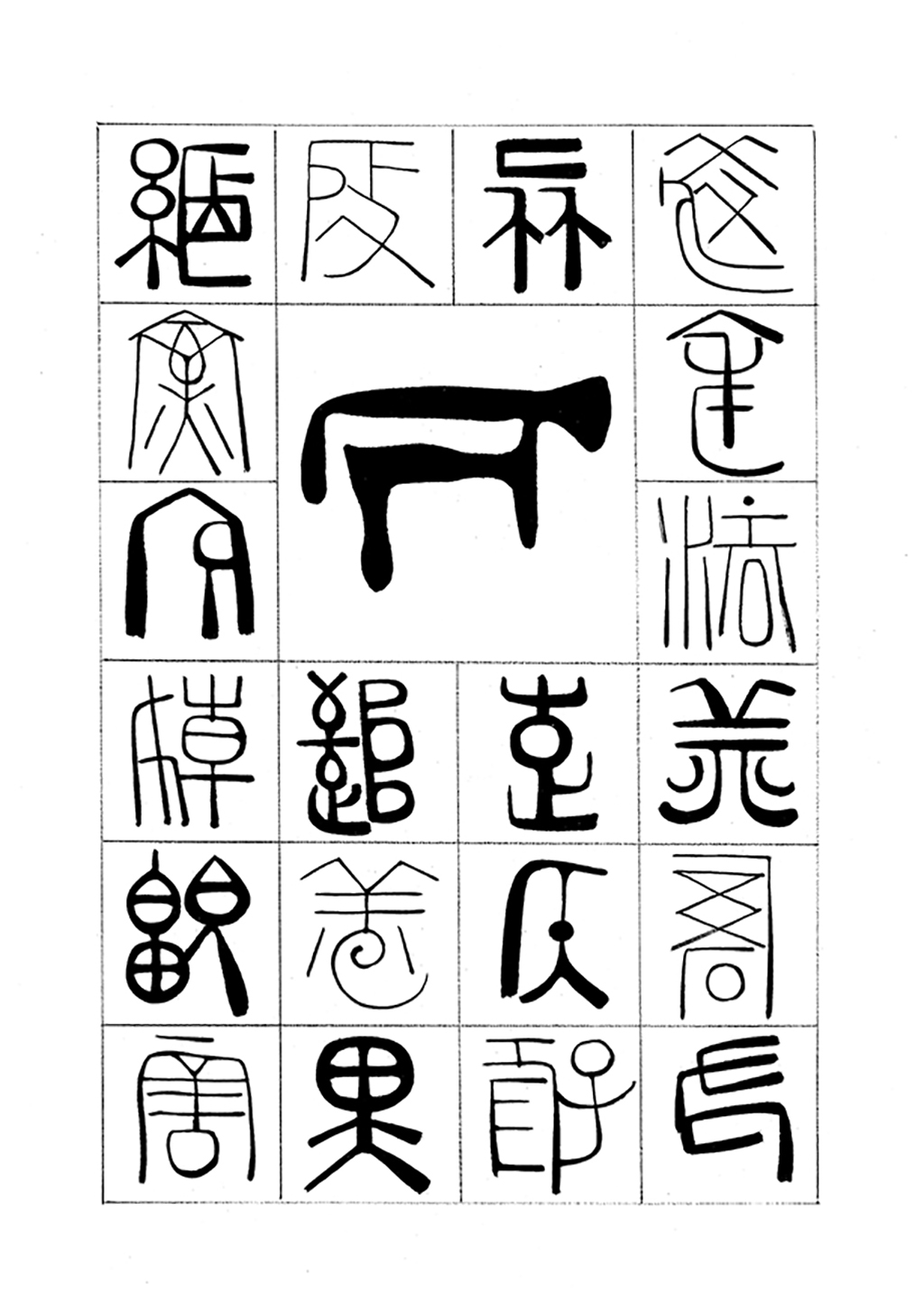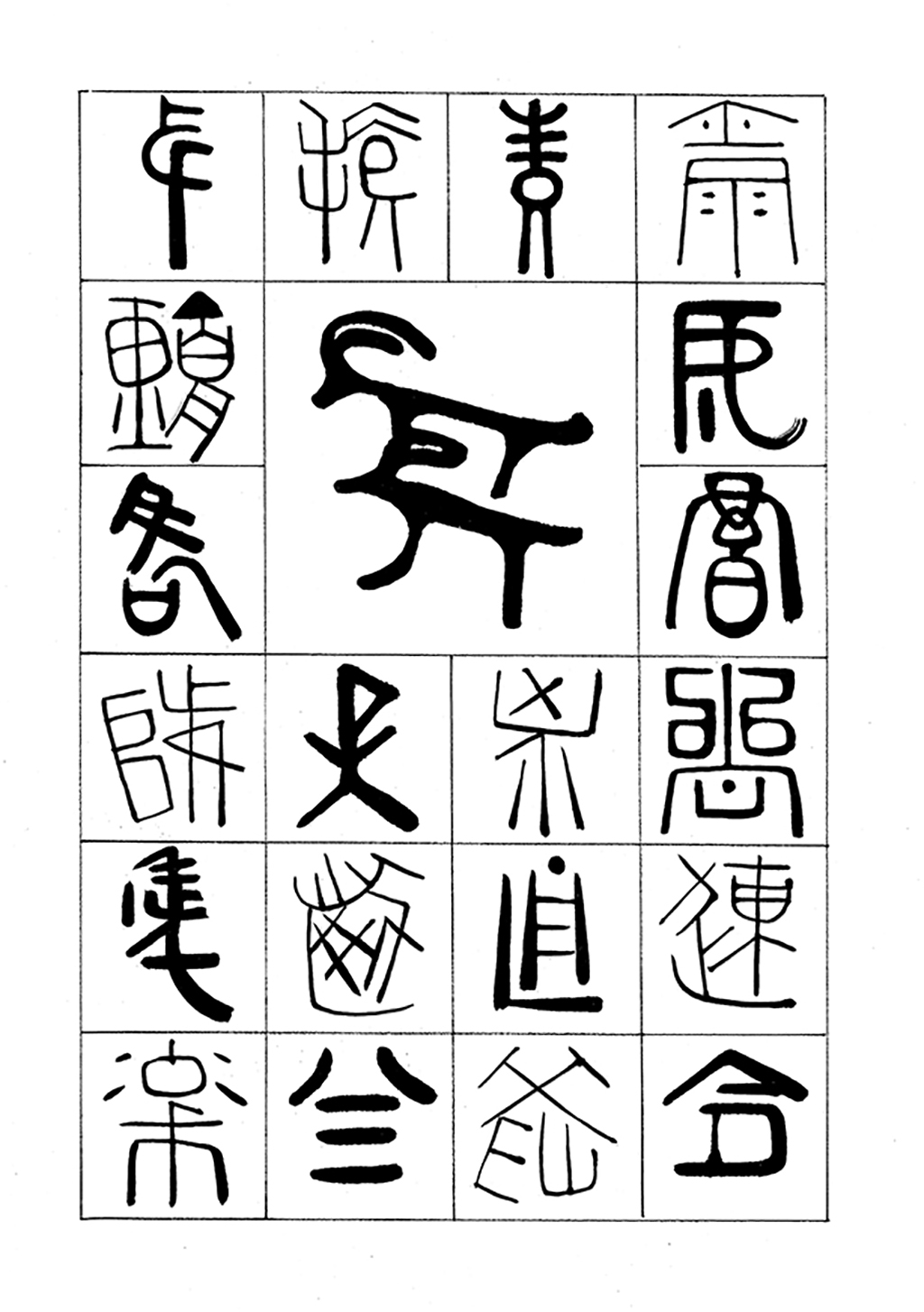 研究篆书是科学家的事,深度、难度都使人望而却步。对古文字的研究与开拓很少读到通俗易懂的著述而难以普及。因为这都是学科性的学问。为此,包括我这个爱好者在内,步子一错再错。我就是没人指导而走向另类“古文字爱好者”的。但是,缘于我的职业——画家,执著而又偏爱的个性,让它在我的绘画中产生了另一面的“副”作用,没像一些青年爱好者半途而废。这本书是我的画路、思路和“歪打正着”路。以我现在的年龄看,我走过来的绘画道路确实没有走错。一个中国的画家,他若想走向世界的话,这条路应该是必经之路——民族的、现代的。