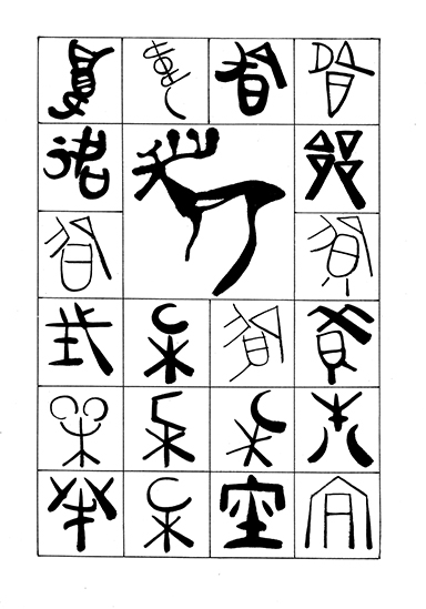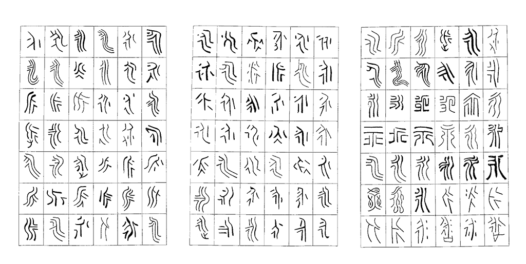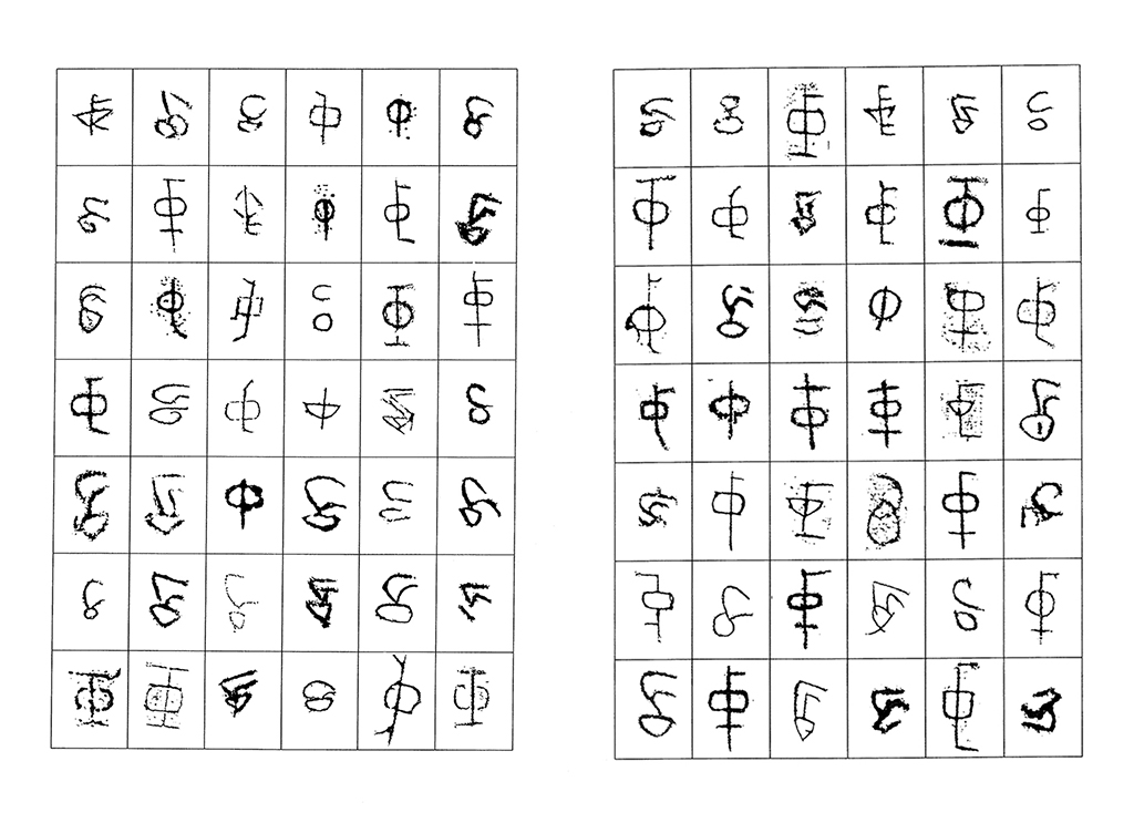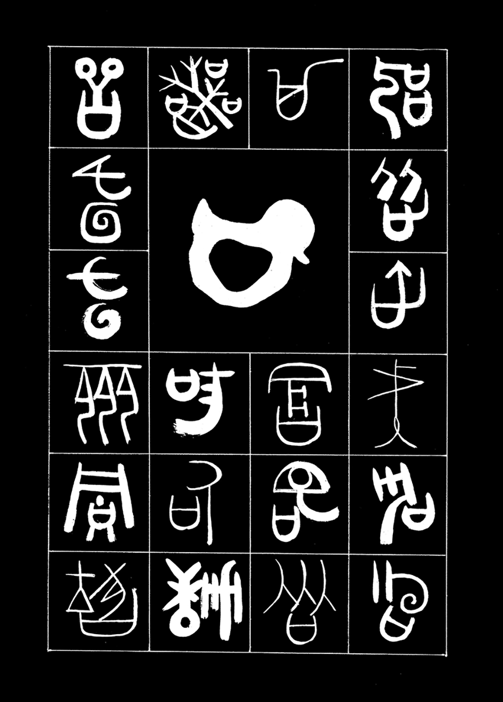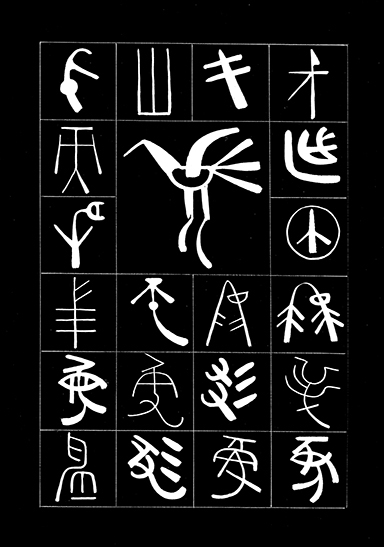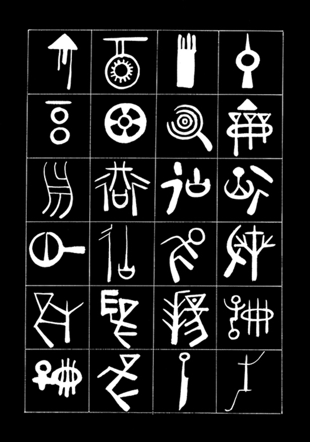既然是“天书”,就不能解读,也不应解读。韩美林先生再三力嘱,要我在这里写点什么。我虽学习古文字有年,对如此新颖的创意体认究竟有限,下面几段话均属题外,是耶非耶,只好请大家来评判了。