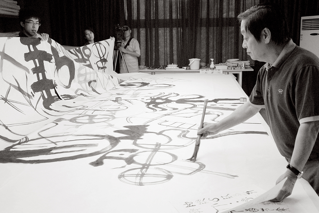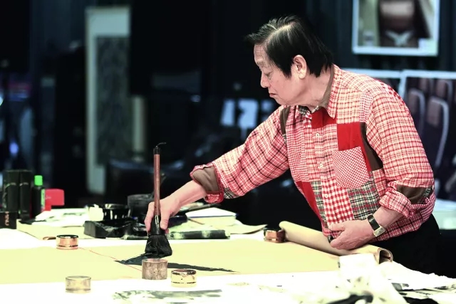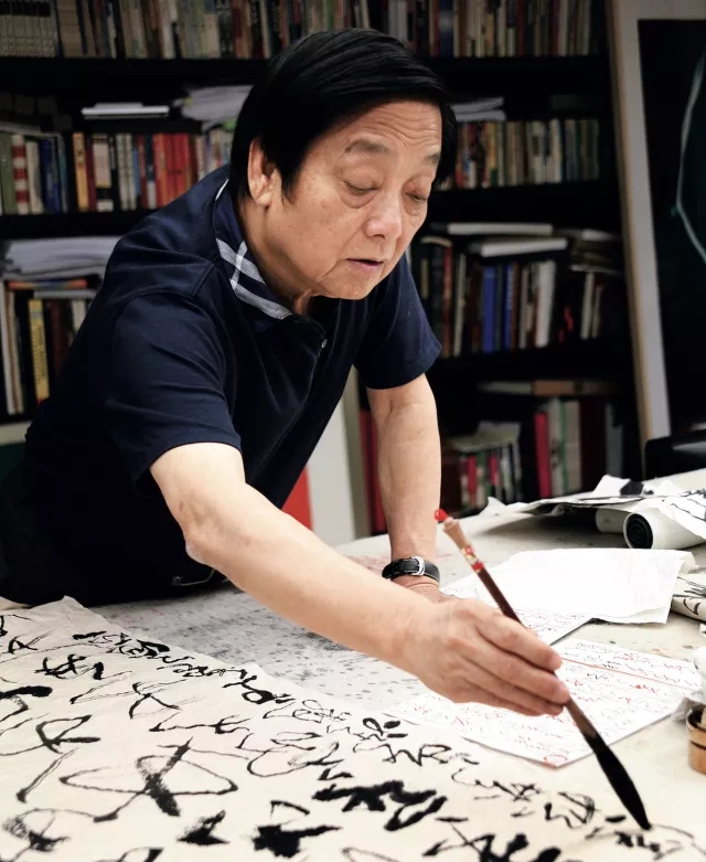 他五岁学书,他可是私塾先生拿戒尺打着他学的童子功,六岁时偶然得到《四体千字文》、《六书分类》和《说文古籀》等几本字帖,当时就爱不释手;他曾到农村与农民同吃同住同劳动,也一同画画、剪窗花、捏面点,他说他是陕北的老奶奶的接班人;他也曾下放到瓷窑,那可是中国最早享誉世界的“外贸”产品……他在中国传统文化中不断发现美,于是他就越发深入其中。但是,他的发现,是有切身体验的,是有思考有比较的,重要的是经过融通之后,有他在此时此地的思考,所以他才能把根深深紥入中国文化这片沃土。就像一棵大树,根深深地紥入这片土地,而树枝树叶同时也吸收土地之外的营养——阳光、空气,也接受风雨的洗礼。各国的艺术、各门类的艺术,被他疯狂地汲取,并被他慢慢地消化。