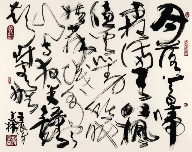 从艺术家角度,这些变化又是另一个激动的视角,宋体、虫鸟篆等都是美术字(京剧、芭蕾舞中也是这样程式化处理),它们像中国画里的工笔,这大草、狂草就是中国画里的大泼墨!