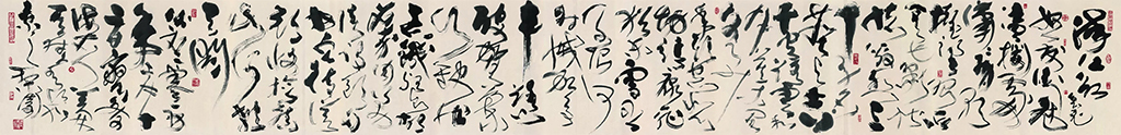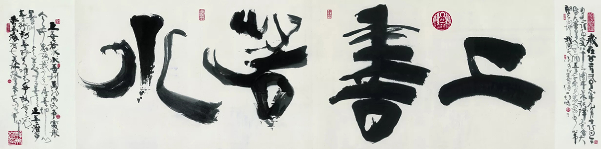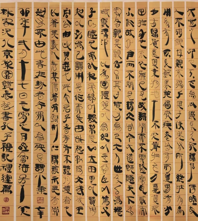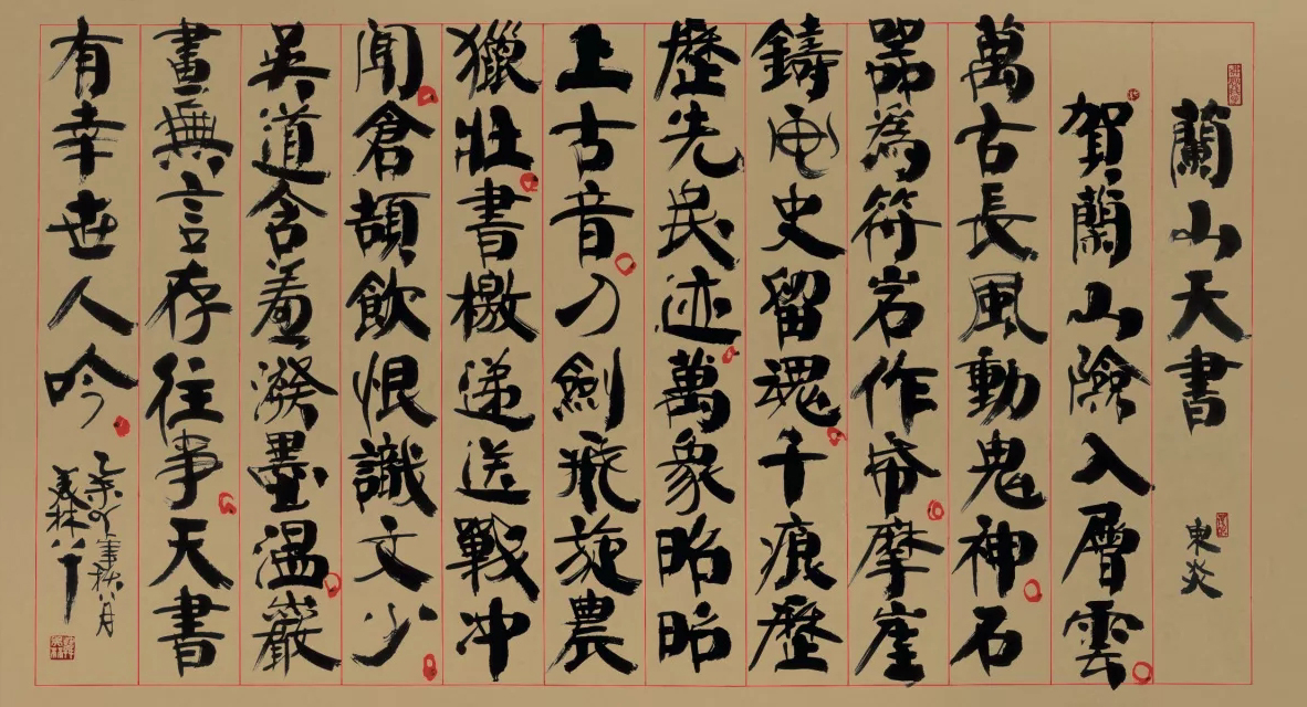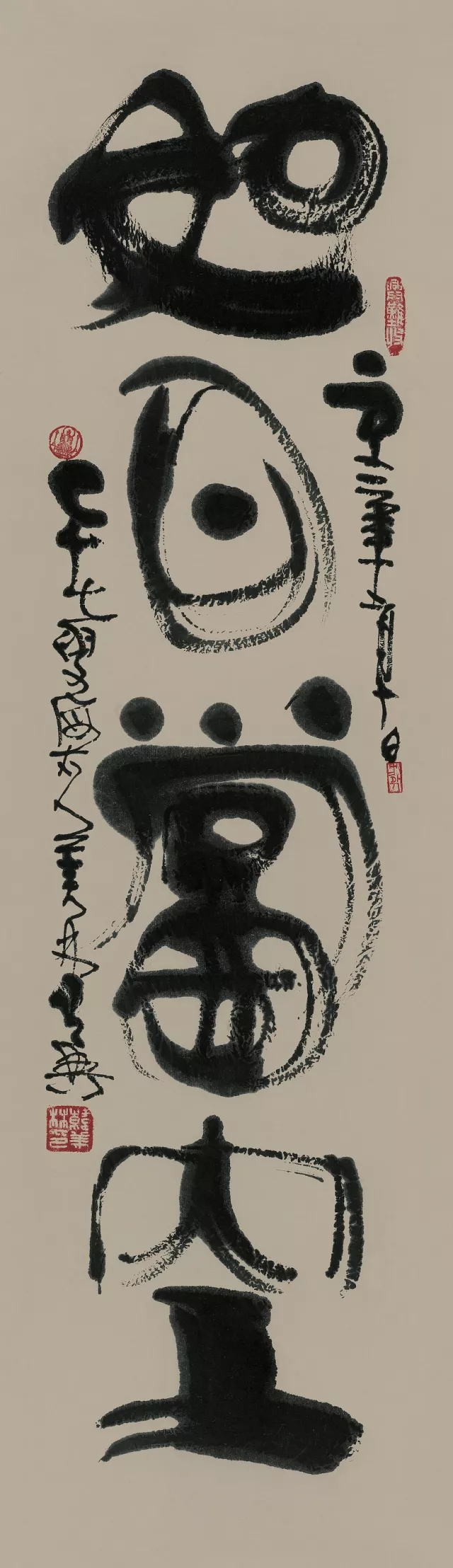 作为画家美林的书法,更具有绘画感。当他把文字学意义的古文字转化为书法艺术的“天书”时,他的审美品位、对形象的敏感,以及视觉形式上无穷的创造力自然而然地融入其中。