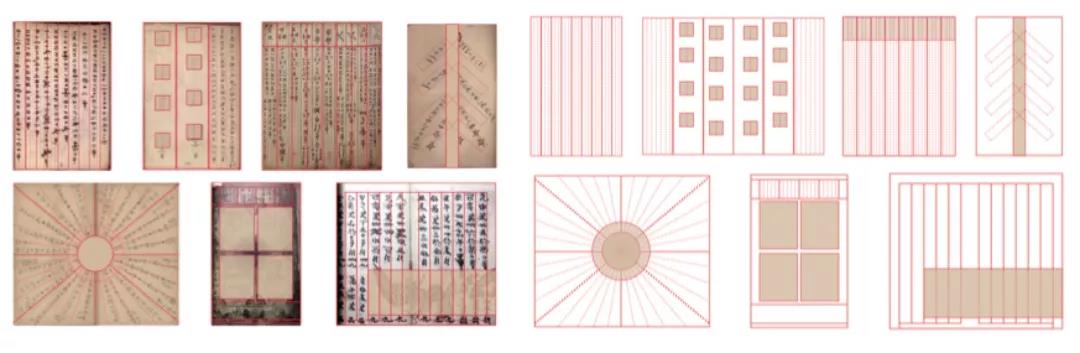 水书有属于自己特点的版式,我将水书较为常用的版式进行总结,并将总结的网格赋予相应地功能,应用于日常的笔记本中,设计基于水书版式的笔记本。