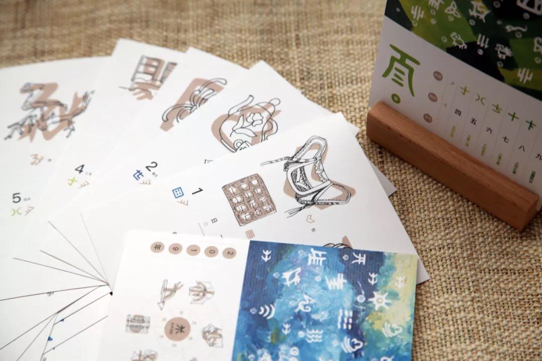 我选取水书名词绘画插图,在绘画过程中依照水书文字的字形,通过插画与水书文字叠在一起的方式带领观众感受水书的象形之美。并将插画应用于日历的设计中,水书日历不仅可以传承水书文化还很实用。